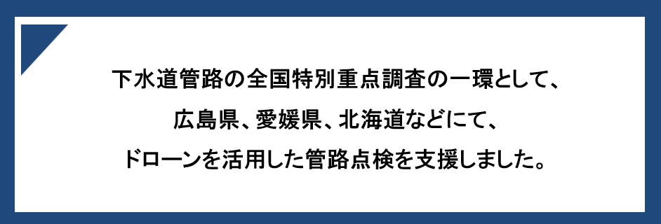 下水道管などの管路内を対象に、ドローンや手押し架台による画像計測・レーザ計測を用いた点検・調査を行います。